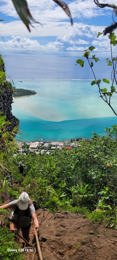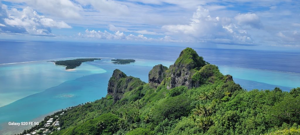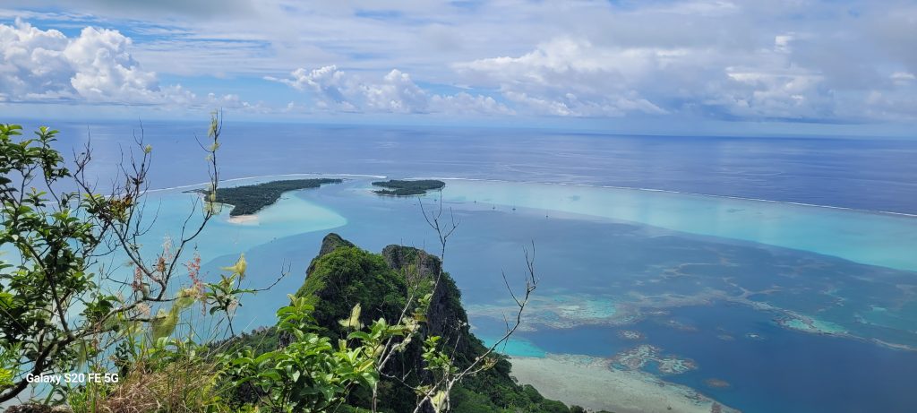 Culminant à environ 380 mètres, cette montagne offre un panorama exceptionnel sur le lagon aux dégradés de bleu et les motu environnants. Les reliefs escarpés qui entourent le sommet rappellent l’origine volcanique de l’île et renforcent son caractère préservé.
